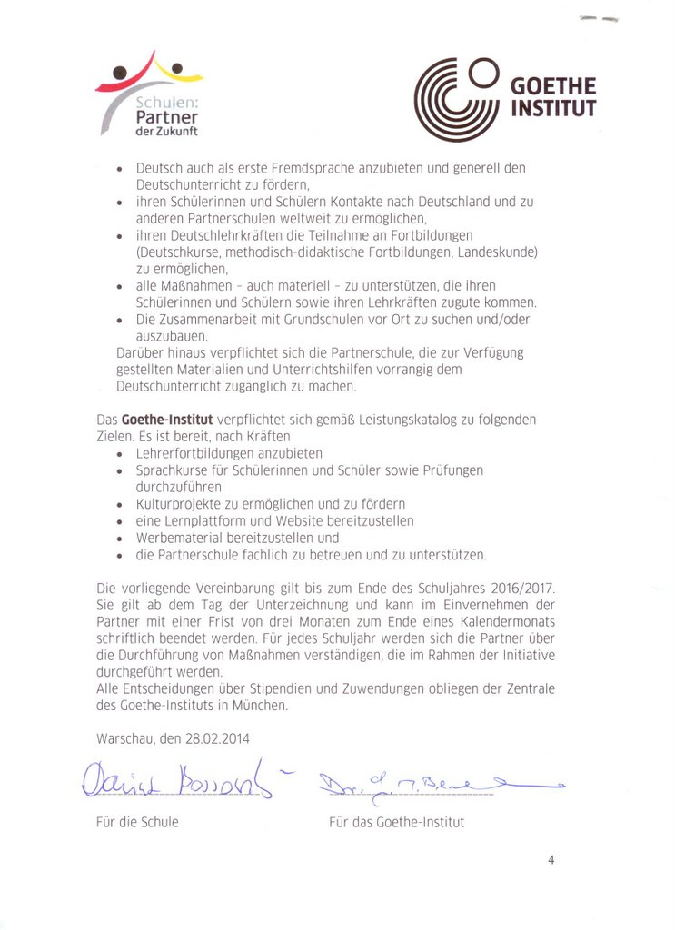 Dzięki tej współpracy uczniowie Szkoły Podstawowej Nr 53 z Oddziałami Dwujęzycznymi mogą przystępować do licencjonowanych przez Instytut Goethego egzaminów dla młodzieży Fit in Deutsch 1, Fit in Deutsch 2 oraz B1J.