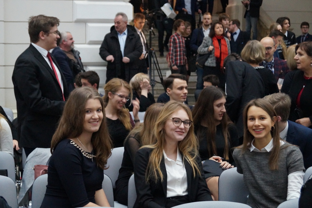 Na uroczystości naszą szkołę reprezentowali: Pan Dyrektor Dariusz Bossowski, nauczyciele - p. Magda Łaszczuk, p. Elżbieta Kackieło, p. Robert Kowalczuk, laureaci i finaliści olimpiad - Patrycja Bilmin z kl. IIIe, Weronika Motkowska z kl. IIIa, Karol Jóźwik z kl. IIg, Wojciech Lach z kl.IIIh, Filip Sokołowski z kl. III h, Jacek Jakimiuk z kl. IIIa, Michał Gerasimiuk z kl. IIh , a także Sapieżanka i Sapieha - Oliwia Hankowska z kl. IIa i Kacper Toczydłowski z kl. IIa.